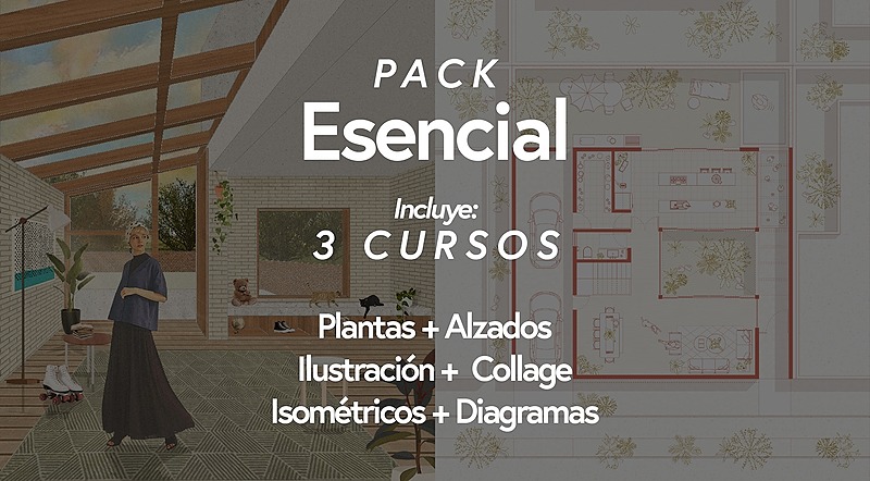 Domina la representación arquitectónica con nuestros 3 cursos esenciales. Aprenderás ilustración y collage arquitectónico, ambientación de plantas, alzados e isométricos utilizando Illustrator y Photoshop.